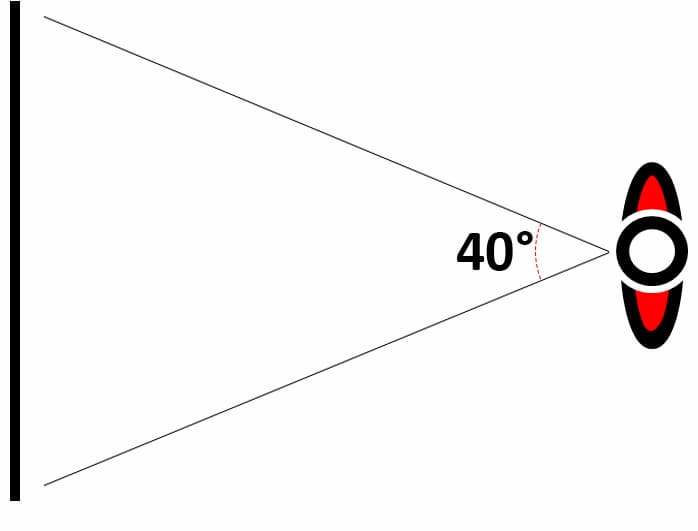 두 번째 기준은 시야각이 40˚인 경우입니다. 이것은 조금 더 영화관 같은 체험을 원할 때 권장하는 시야각입니다. 30˚에 비해 TV와 나와의 거리가 조금 더 가까워지기 때문에 극장에서 영화를 보는 것과 비슷한 느낌을 받을 수 있습니다.