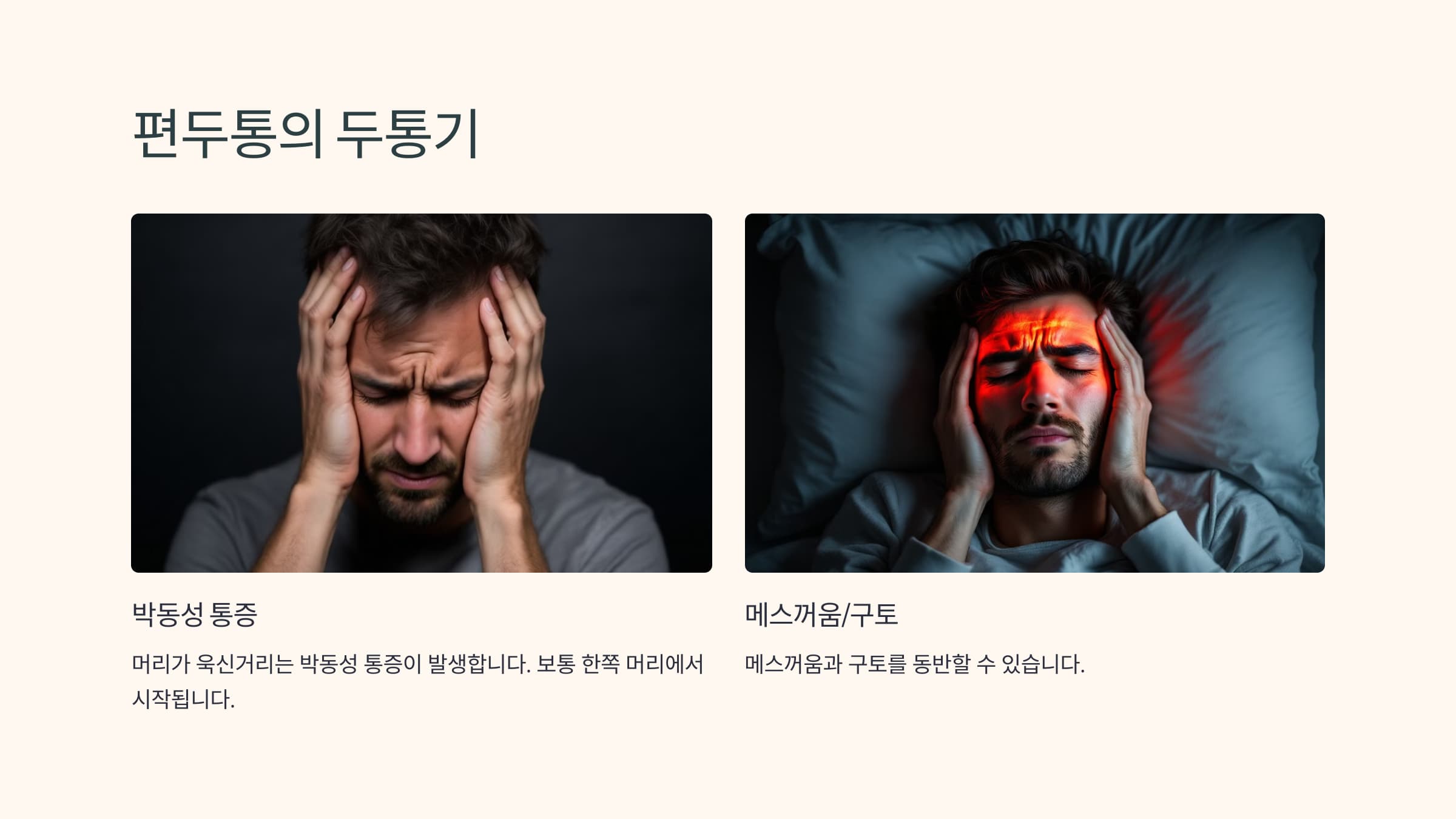 - 두통이 나타나면 일상활동을 하기 어렵다