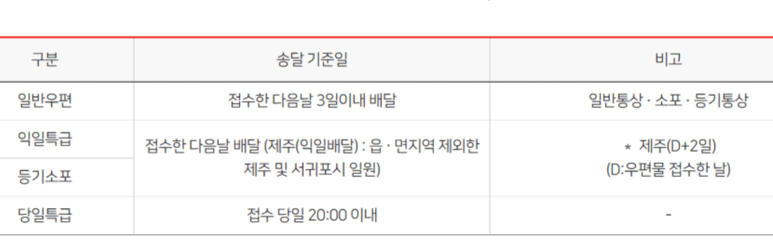 등기와 차이점이라면 비대면 배송이라는 점입니다.